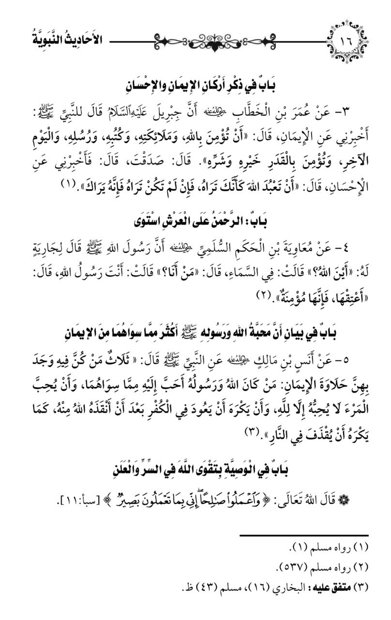 كتاب يجمع أحاديث نبوية صحيحة، وبعض الآيات القرآنية، وهو مقسم على قسمين: