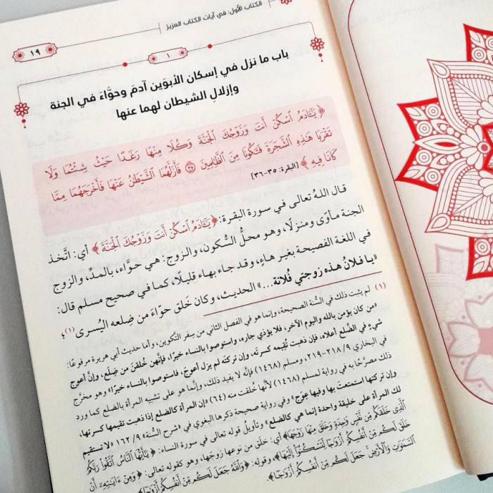 الكتاب مبتكر في عرضه وأسلوبه، تميز بجمع آيات الكتاب الحكيم، وأحاديث النبي الكريم الخاصة بأمور النساء، وشرح الآيات شرحا واضحا اختاره مما ورد في كتب التفسير المعتمدة، وذكر في نهاية كل حديث مصدره من كتب السنة، وختم الكتاب بما تخصصت به النساء وتميزت دون الرجال من الأحكام. فهذا الكتاب يسد ثغرة كبيرة و يسد ثغرة كبيرة وهامة في ثقافة المرأة المسلمة، للمساهمة في أسباب النهضة على أسس واضحة لبناء صرح البيت الإسلامي عقيدة وعبادة وسلوكا.