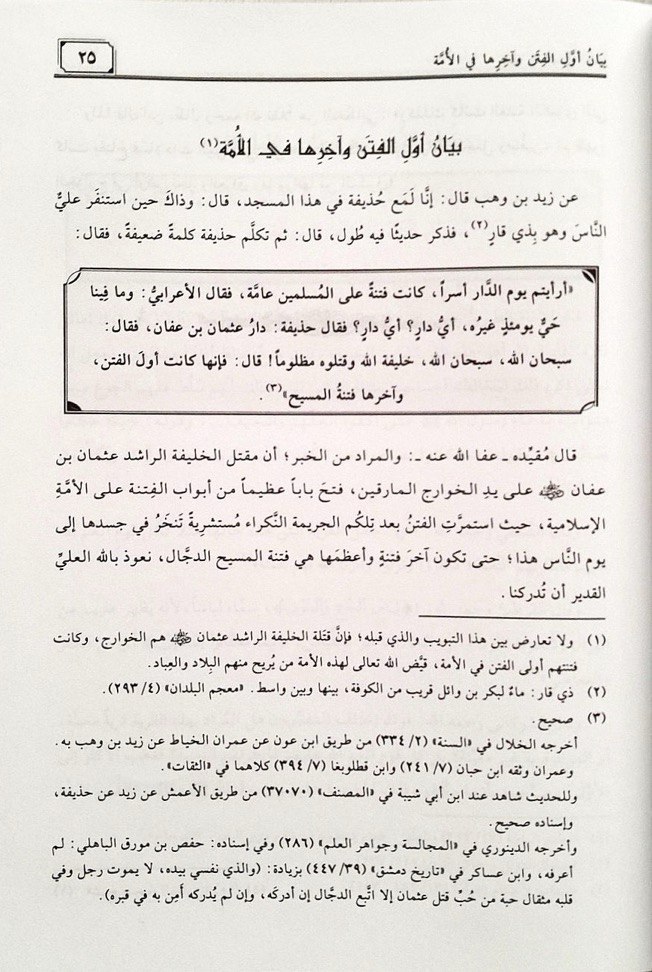 إن وفاة النبي صلى الله عليه وسلم من أكبر المصائب التي حلّت بالأمة الإسلامية، وهي إيذانُ بوقوع الفتن وانتشارها فيها، بدءاً من صحابته الأبرار رضوان الله عليهم أجمعين إلى يوم الناس هذا، حيث يلتبس على كثير من الناس، بل على بعض الفضلاء من أهل الديانة والصلاح، لأن الفتن تذهب بالعقول وتأخذ بالألباب، فتدع الحليم حيران، والفتن لا يعرفها إلا الراسخون في العلم، ولا يقوم فيها إلا الجهال، وفي ظل هذه الأمواج المتلاطمة من الفتن والقلاقل، كان لزاماً على كل مسلم شحيح بدينه، حريص على اقتفاء آثار أسلافه، أن يلتمس طريق السلامة والنجاة من هذه المدلهمات، من خلال الوقوف على طريقة السلف الصالح رضوان الله عليهم أجمعين وآئمة الدين من بعدهم في التعامل مع الفتن والتماس سبل النجاة منها ومن مُضلاتها، أعاذنا الله منها أجمعين..