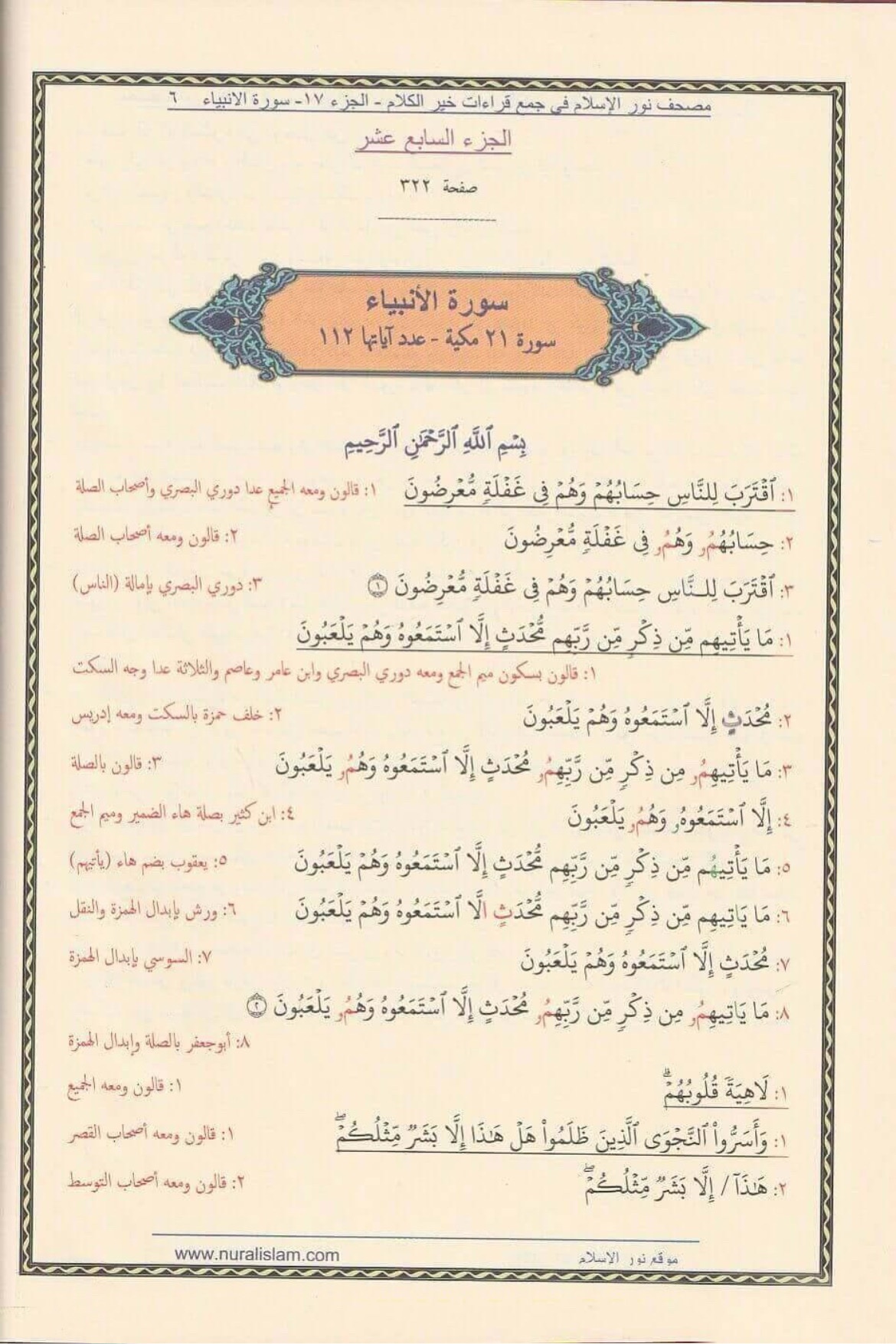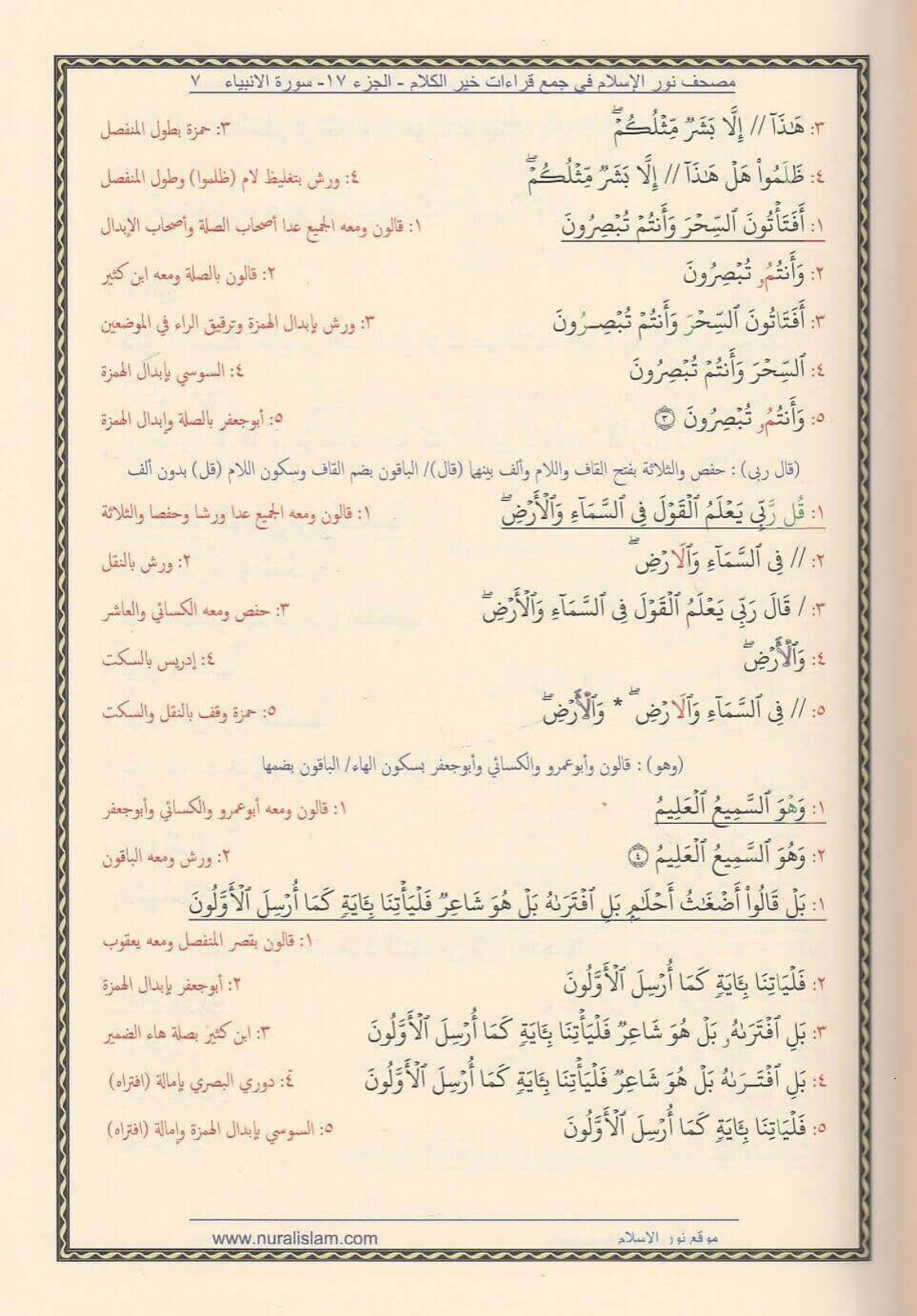 إليكم هذا الكتاب الذي به بإذن الله تعالى يزول همّ التحضير والبحث ويكون مصدر تحقيق عند المشايخ وطلاب العلم في ترتيب أوجه القراءات ، أي بفضل الله تعالى بهذا الكتاب توفرون الجهد والوقت، ولا حاجة بعد اليوم لتدوين الملاحظات على المصحف، بل هو مصحف مكتوب بالقراءات العشر كاملة.
