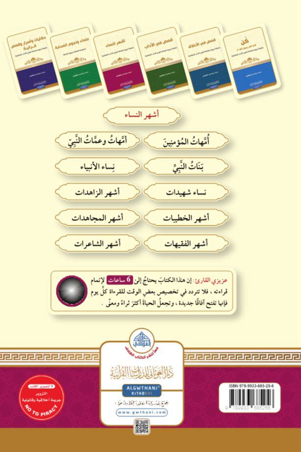 أشهر النساء أُمَّهَاتُ المُؤْمِنِينَ أمَّهَاتُ وعمَّاتُ النَّبِيِّ بَنَاتُ النَّبِيِّ نساء الأنبياء نساء شهيدات أشهر الزاهدات أشهر الخطيبات أشهر المجاهدات أشهر الفقيهات أشهر الشاعرات.