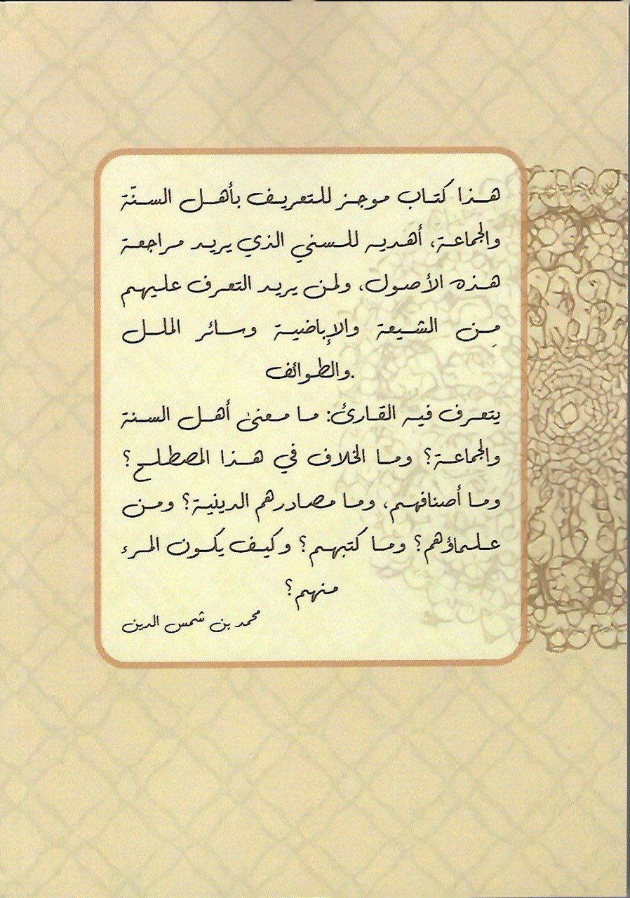 كتاب موجز يهدف إلى تقديم تعريف سهل ومباشر بأهل السنة والجماعة، موجَّه للقارئ المبتدئ أو لكل من يريد مراجعة الأصول الأساسية لهذا المفهوم دون الخوض في تفاصيل المذاهب الأخرى أو الطوائف.